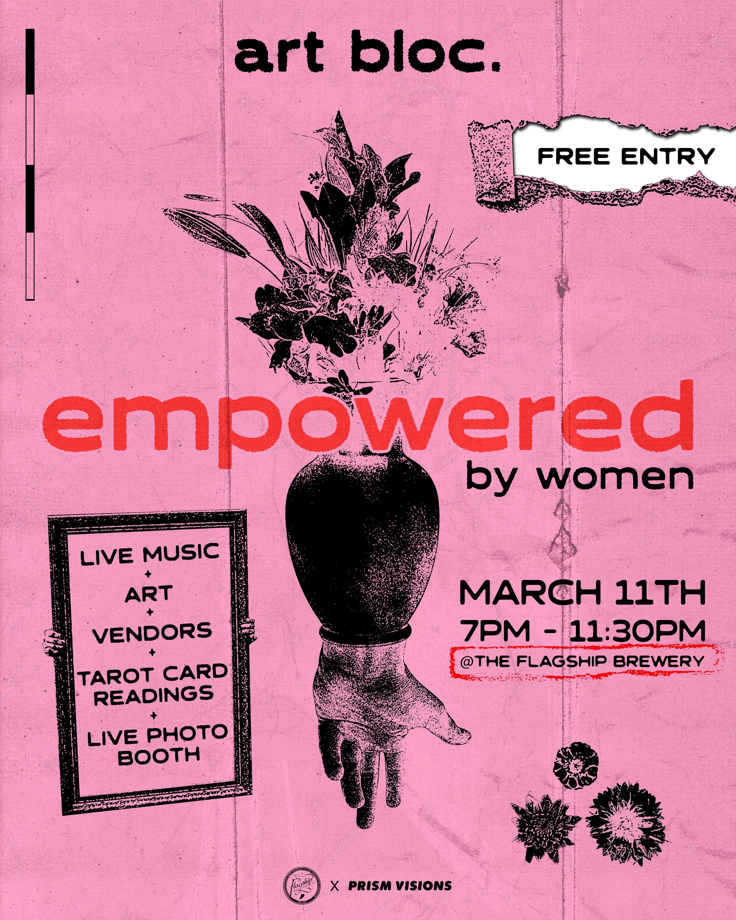 Art Bloc. is an innovative event designed by an entrepreneurial young artist, Laura Pannone of Prism Visions (PV). The inspiration for Art Bloc as a pop-up multimedia exhibit was to both unite a diverse community with art and provide local artists with a platform to be recognized and supported for their creative endeavors. However, the segment of Art Bloc. “EMPOWERED,” which will be held at the beloved local venue The Flagship Brewery on March 11th, has been planned specifically with an even more critical intention: to amplify the voices of a marginalized demographic of our society, WOMEN! After the infamous Supreme Court decision to overturn Roe V. Wade, curating a conversation about Fourth-Wave Feminism became a necessity. The “Fourth Wave” began in approximately 2012, “with a focus on issues such as sexual harassment, body shaming, and rape culture, among other issues.” The age of social media, and the creative and critical content creators that paint its pages, are crucial components of presenting this pivotal pursuit. As a content creator herself, PV’s mission for this exhibit echoes that of Staten Island Art’s Premier to create a dialogue that addresses political division and inequality, particularly providing a platform for content that portrays a call for feminism. PV also believes that art is a reflection of feeling and culture, which also serves as a unique and extraordinary catalyst for change. The EMPOWERED exhibit of Art Bloc. – intentionally scheduled to take place during Women’s History Month – will feature a variety of multi-disciplined female artists from the borough of Staten Island with the purpose of empowering female creatives and amplifying their cry for freedom. The artists/vendors showcasing their work will display art they feel empowers them. Additionally, Prism Visions will be photographing portraits of all those who support the message by attending! By capturing the beauty of attendees live, this artist intends to further empower each and every guest to emphasize the message. The theme of “empowerment” evidently encompasses the solidarity of sisterhood, but also strives to reach an audience far beyond those who identify as female. The messaging of power and equality in EMPOWERED intends to resonate with all audiences who relate to feelings of disenfranchisement or oppression, as well as any allies in the quest for freedoms. We are all allies through art! Through this exchange of creation, we reinforce our collective message and bolster one another through our pens, paintbrushes, lenses, and linework. By utilizing their talents to support a social cause, artists like PV, and those she exhibits, broaden the work beyond our own neighborhood and to the sisterhood at large. Our bodies and bonds can not be silenced! However, economically the cost of executing such a plan can muffle the message. A grant from SI Art’s Premier will help the curator amplify our voices, unimpeded! The financial support will be used for a variety of purposes including marketing, materials, and compensation of live entertainers. The band, all of which are female, will express themselves and our theme through their music, further diversifying the expansive forms of art at the event. Most importantly, the assistance of this organization will support the work of many talented Staten Island female artists, literally empowering our spirits as expressive women to remain resilient in the face of those who would otherwise stifle our creativity.